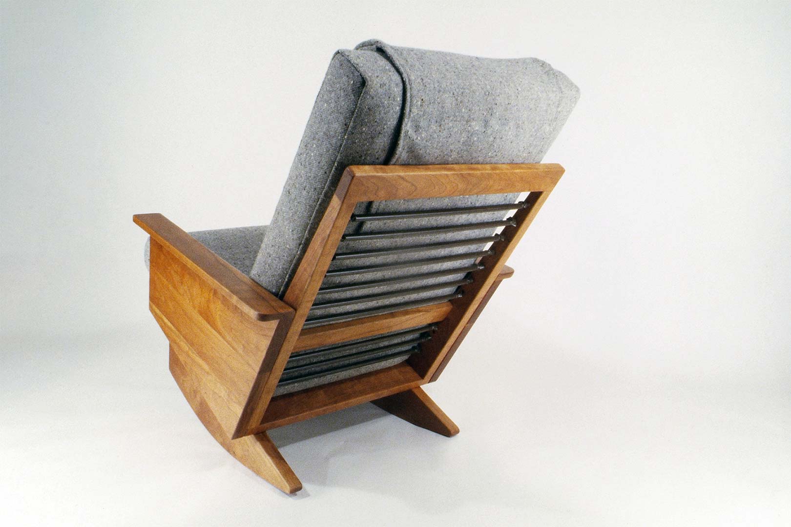 A classic American design, the rocking chair takes on a new, novel form with Arden’s sled base S308R rocking chair. Conceived out of an affinity for Frank Lloyd Wright’s substantial utilitarian chair design and made of solid hardwood with plush cushions, the rocker delivers on its ability to blend with most design aesthetics. Considered by many to be Arden’s quintessential chair, there are only 64 documented sales in his records.